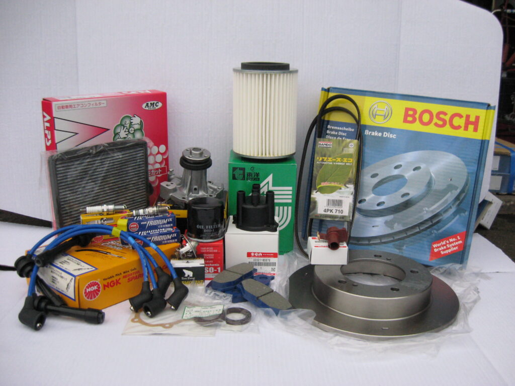 ●ウォーターポンプ ●エアフィルター ●オイルフィルター ●エアコンフィルター ●デスビキャップ ●サーモスタット ●プラグコード ●プラグ ●ベルト関係 ●クランクカムシール